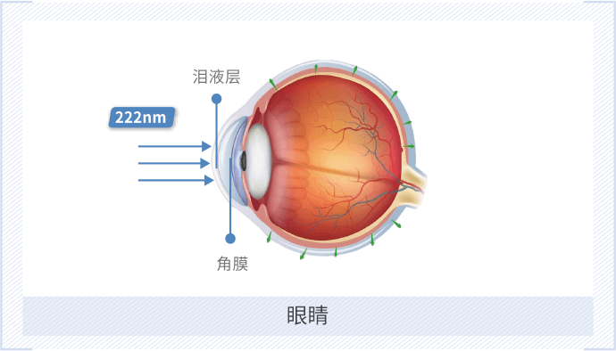 • 222纳米波无法穿透泪液层,对眼睛安全。眼角膜上层4—6个细胞每48小时代谢一次,因此对眼睛无长期照射风险。